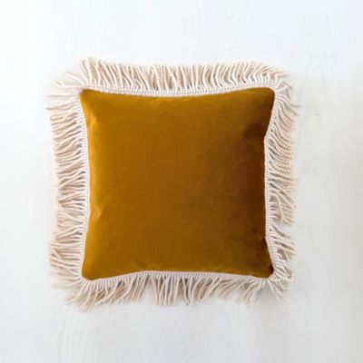 Omarm de verfijning van het Juliegold kussen met elegante franje-accenten. Het zachte ontwerp creëert een uitnodigende sfeer en past dankzij de subtiele kleur harmonieus bij elke inrichting.