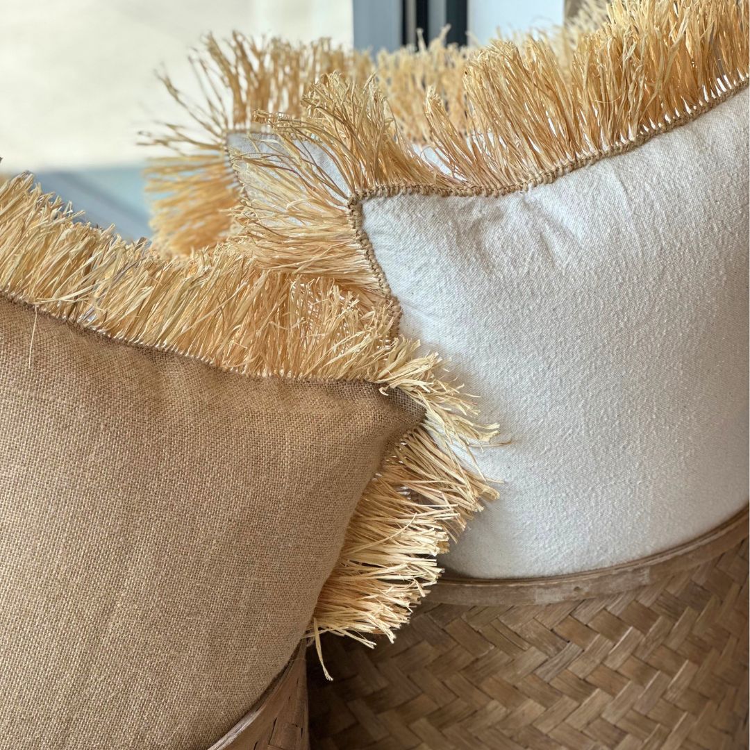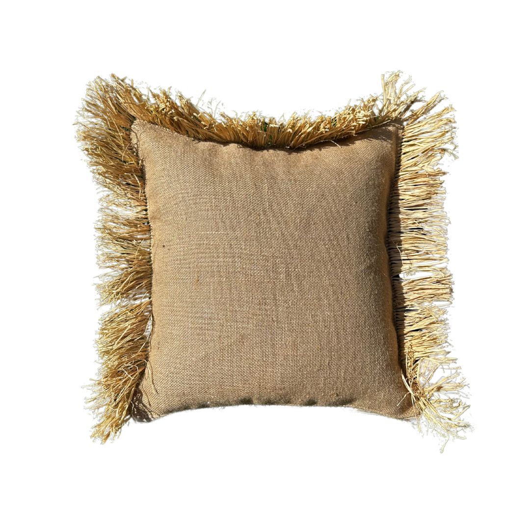 Geïnspireerd door de kleuren en texturen van Marrakech, brengt het Jute Raff sierkussen een vleugje exotische charme naar je buitenruimte. Met de hand vervaardigd van robuuste jute en ontworpen voor buitengebruik, is dit kussen zowel stijlvol als functioneel.